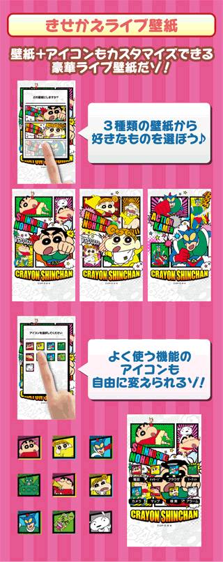 ライブ壁紙 しんちゃんアメコミ風 アイコン付き 説明 クレヨンしんちゃん